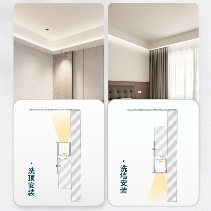 双眼皮石膏线灯带单边铝槽吊顶灯槽氛围灯向上打光洗顶线性洗墙灯