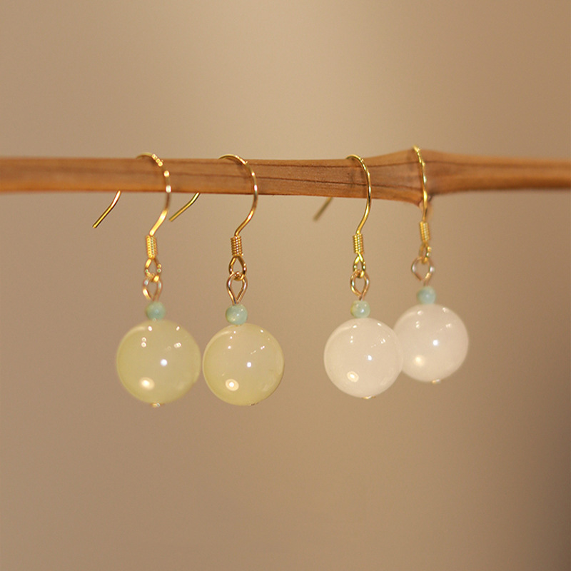 声声慢和田玉耳环复古新中式冷淡风淑女耳环气质国风白玉圆珠耳钩