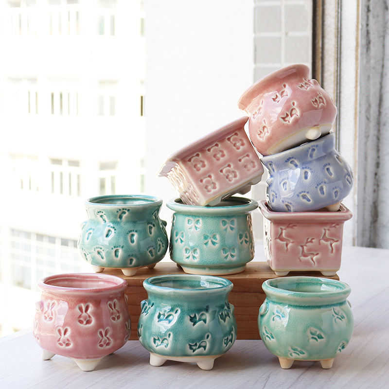多肉花盆陶瓷小多肉植物粗陶家用创意简约复古素烧紫砂透气大特价