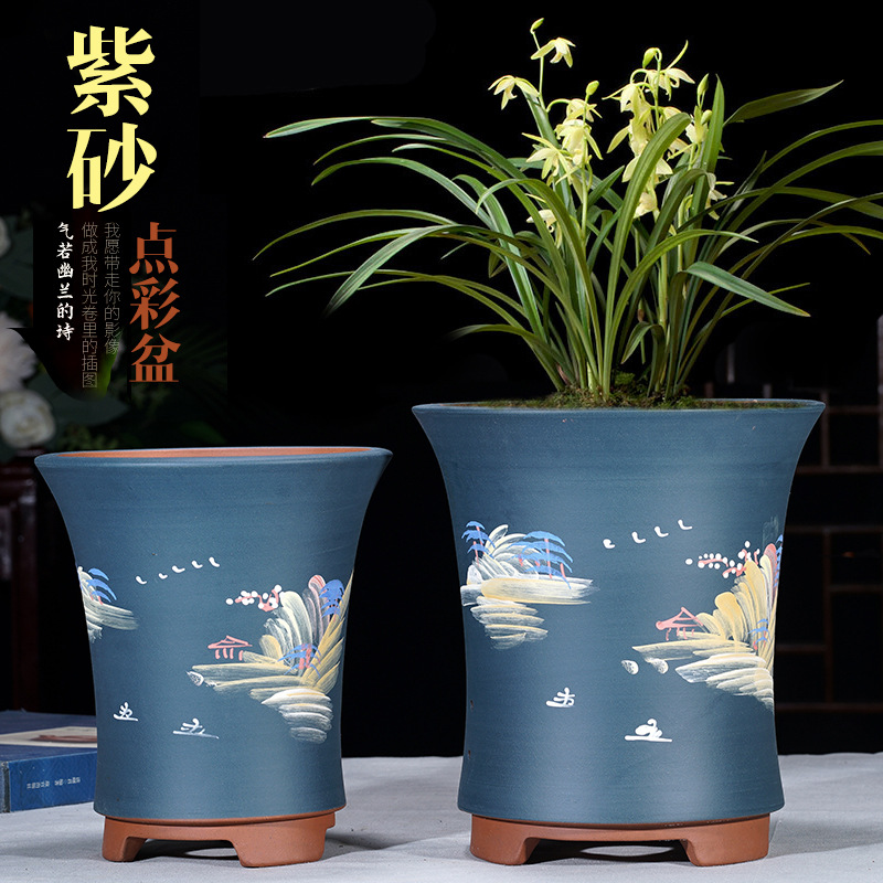 紫砂花盆兰花盆陶瓷大号室内兰草竹韵束腰盆景盆特价清仓包邮