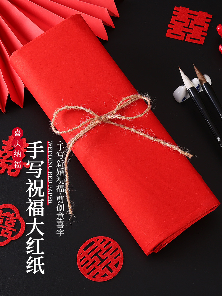 结婚大红写对联剪纸压井盖用品婚庆婚礼对联纸红纸大张加厚的单面