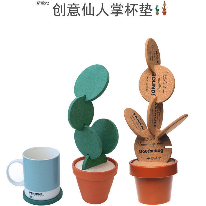 仙人掌杯垫防烫EVA隔热垫创意简约风防滑马克杯垫圆形可爱茶垫盒