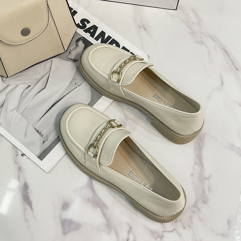 复古金属扣英伦小皮鞋女2023年新款小香风平底单鞋软皮工作乐福鞋