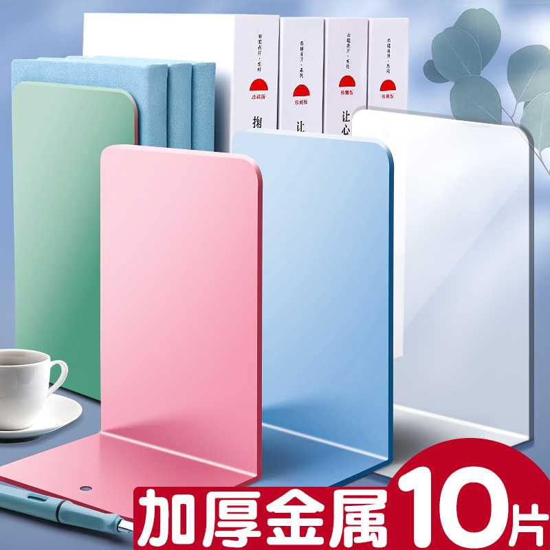 10片加厚书立金属书立架简约书夹固定书本收纳书架桌面收纳盒书靠
