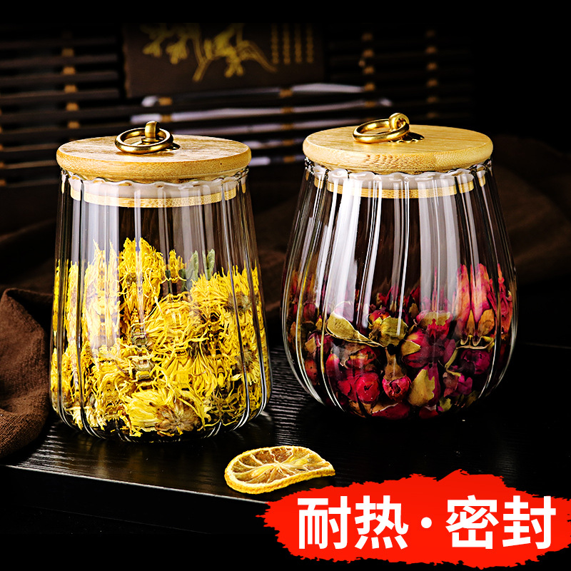 日式玻璃茶叶罐密封罐家用花茶储存罐便携小号罐子五谷杂粮收纳罐