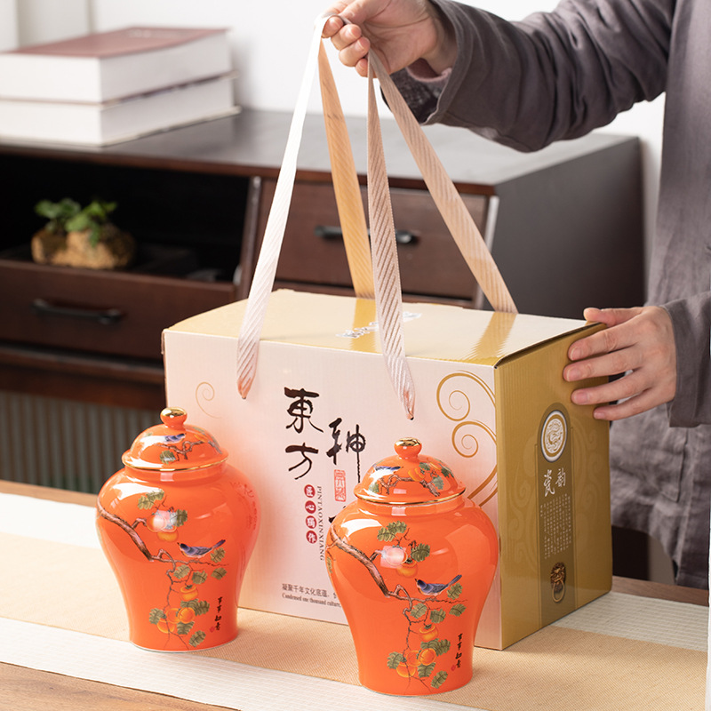将军罐茶叶罐中号陶瓷密封罐防潮家用送礼茶叶盒茶叶包装罐