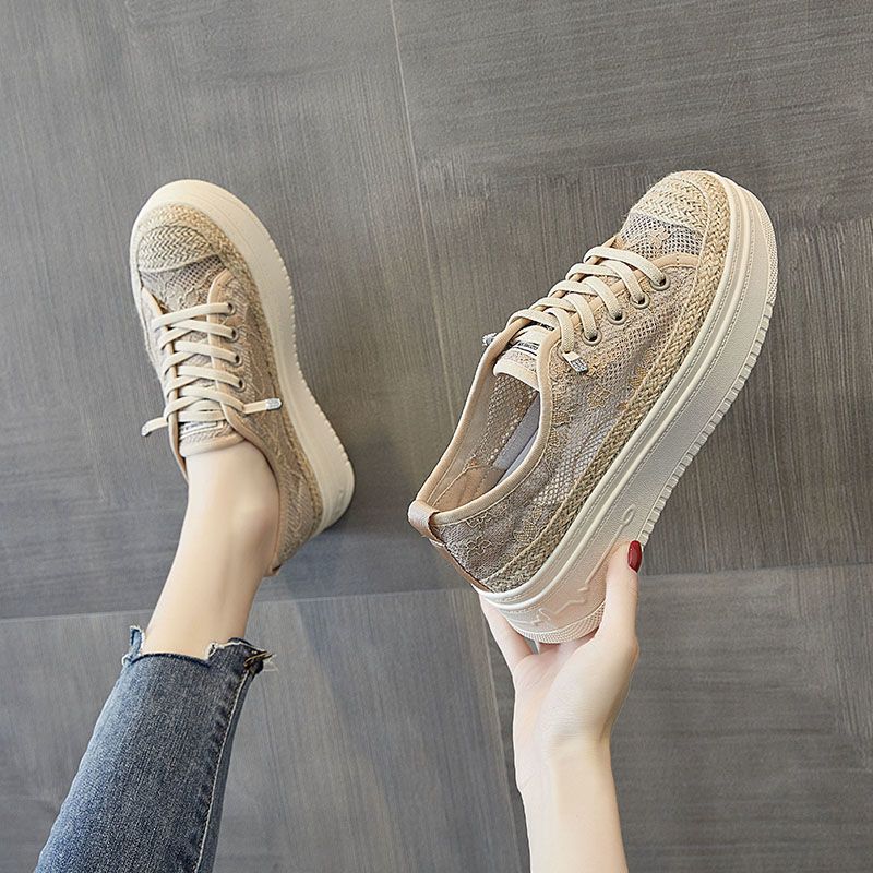 网鞋女透气网面小香风渔夫鞋2023年新款厚底单鞋懒人一脚蹬女鞋夏