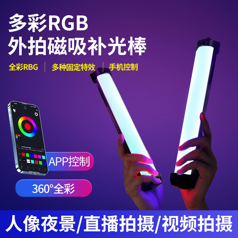 便携式摄影灯手持补光灯 炫彩RGB补光棒 照明灯具直播自拍摄影