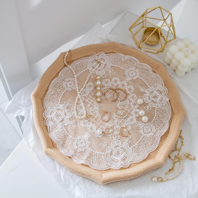 ins圆形法式复古刺绣花朵蕾丝垫 首饰饰品拍照道具摄影背景布装饰