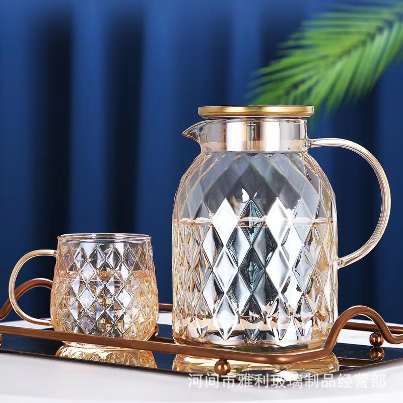 轻奢冷水壶家用大容量凉水壶高硼硅玻璃水壶北欧客厅泡花茶壶套装