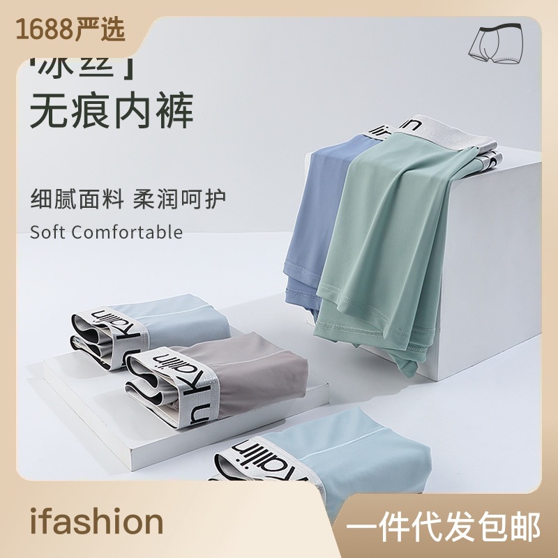 现货批发男士冰丝内裤无痕平角裤纯色超薄透气男生四角裤跨境代发