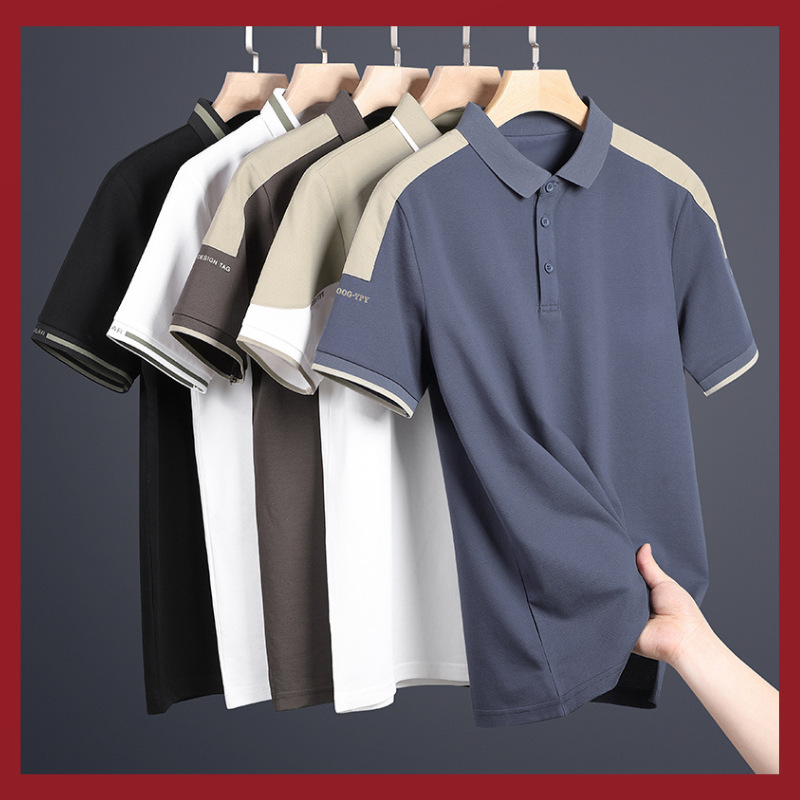 夏季新款Polo衫男装潮流拼接撞色短袖T恤刺绣翻领中年商务上衣服