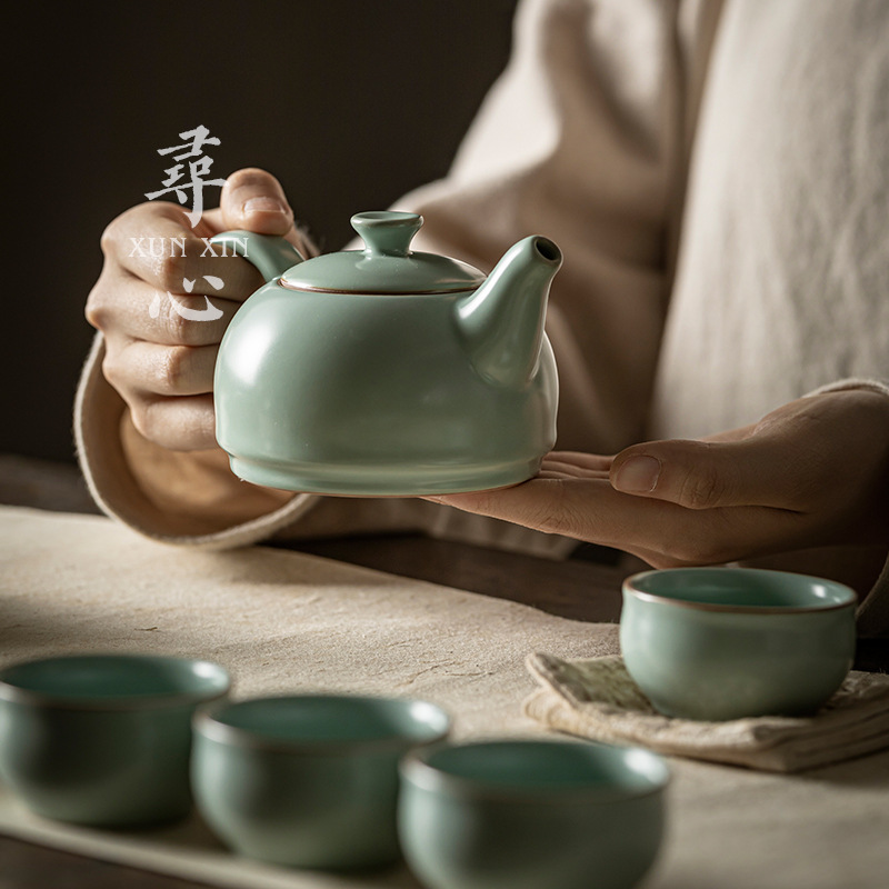 汝窑开片可养功夫茶具套装家用陶瓷泡茶壶轻奢茶壶茶杯礼盒装