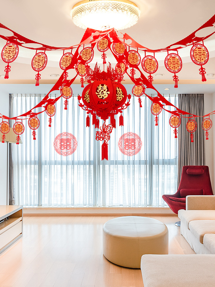 婚房客厅婚庆房顶布置装饰创意女方中式用品婚礼男方浪漫拉花大全