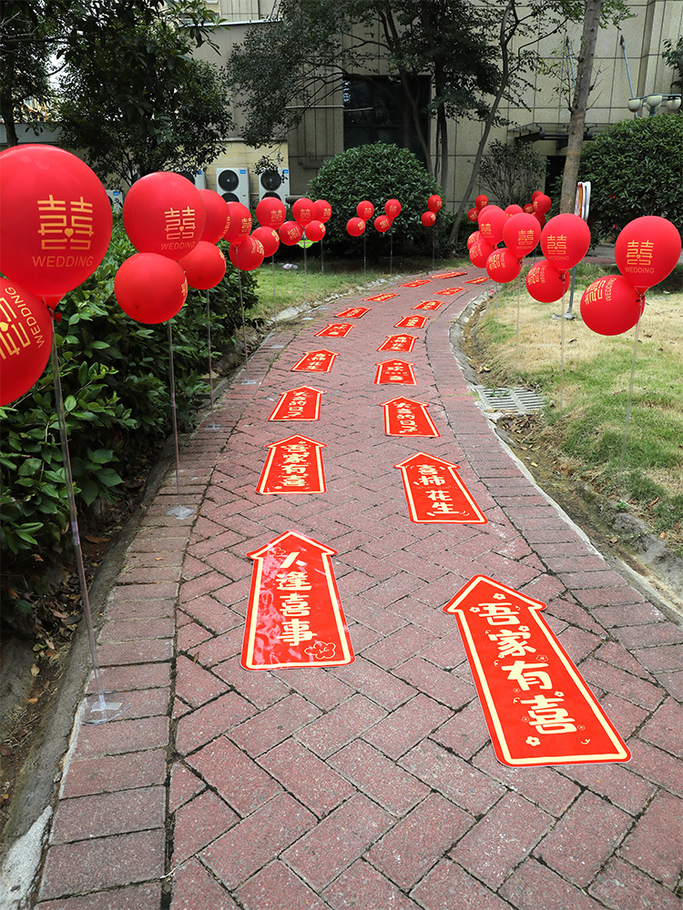 结婚喜字气球路引地飘小区布置农村院子装饰室外婚礼装扮婚庆用品
