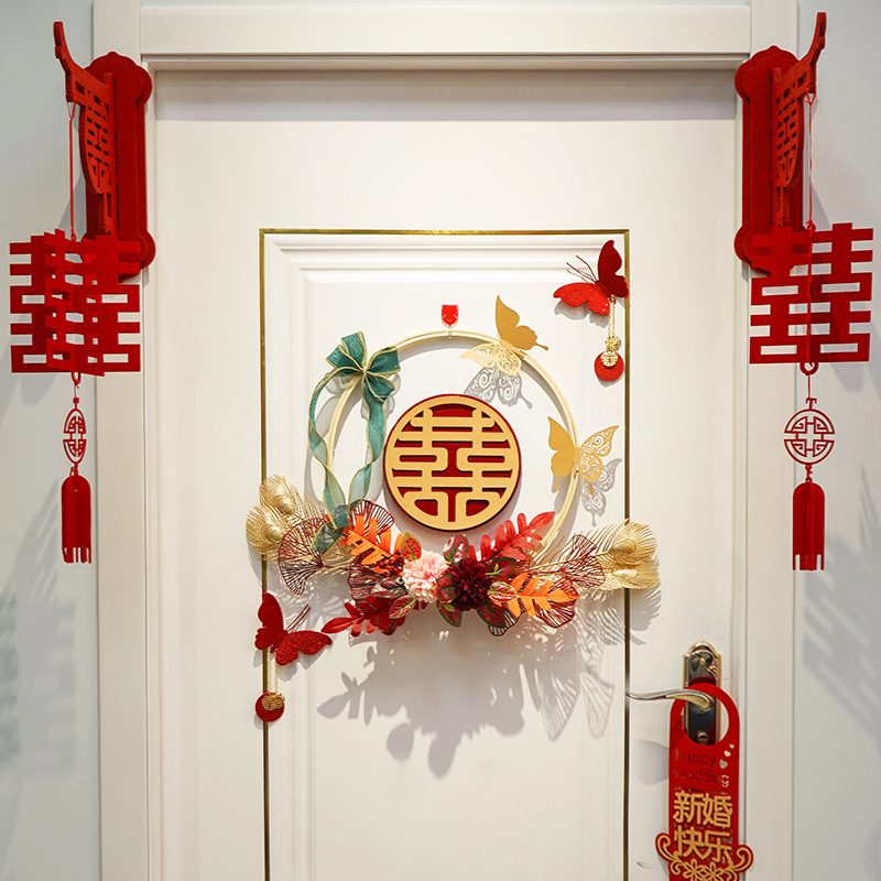 婚房布置门上房门卧室结婚门贴喜字贴套装门口囍婚礼装饰婚庆用品
