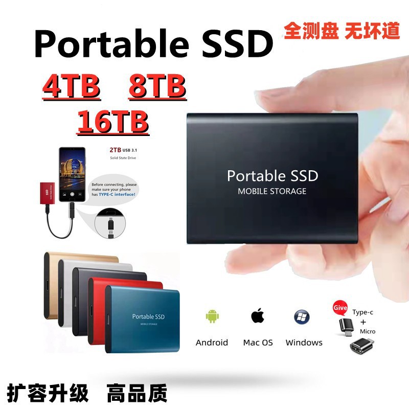 跨境款移动固态硬盘大容量16T4T2T扩容升级升级高速传输硬盘1t