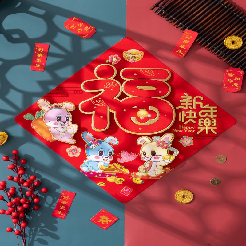 立体福字贴室内家用婚庆结婚节门贴装饰品大门绒布乔迁2023兔年