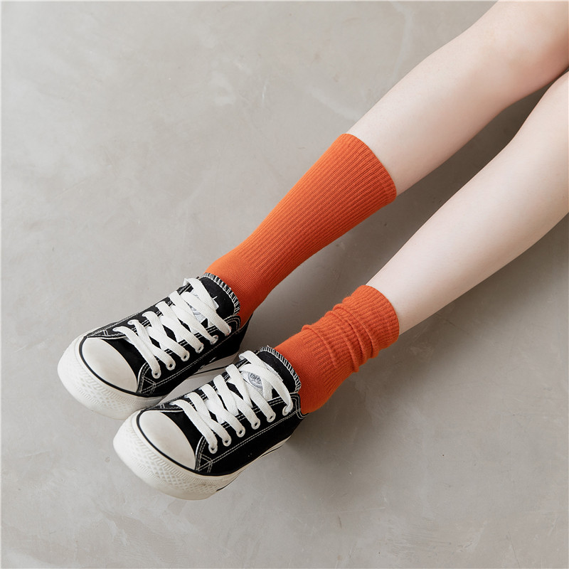 秋季ins纯色简约运动中筒袜棉质透气堆堆袜彩色潮流长袜子女男