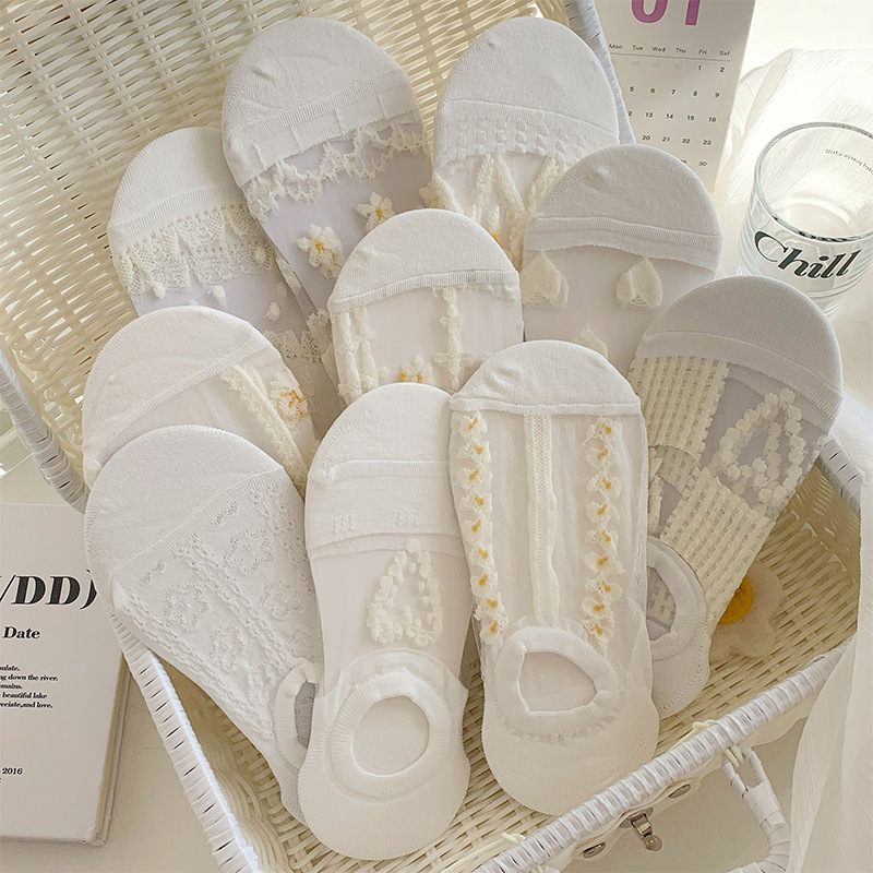 白色袜子女空调日系玻璃丝纯色薄款透气丝夏季浅口隐形船袜水晶袜
