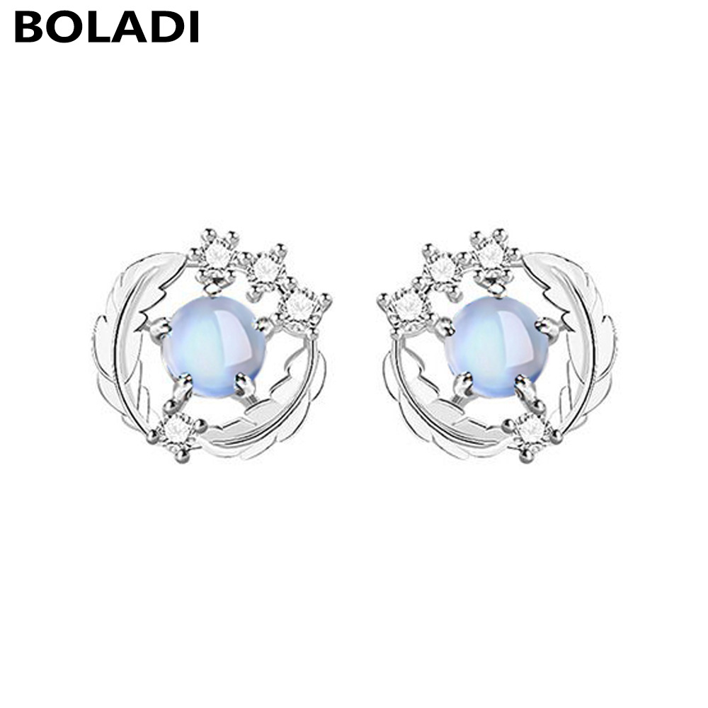 新品S999纯银羽毛耳钉你相伴时尚网红月光石小众耳环耳饰现货