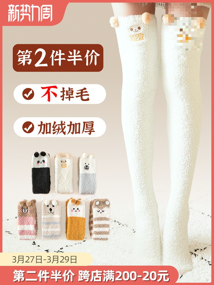 珊瑚绒居家保暖过膝睡眠长筒袜长腿地板秋冬毛绒加绒高筒护膝孕妇