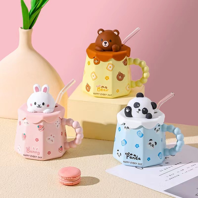 马克杯带盖可爱陶瓷杯子女生高颜值新款大容量吸管水杯咖啡杯水杯