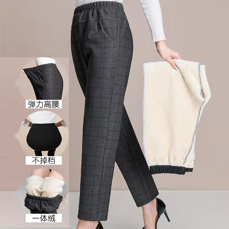 中老年加绒裤妈妈羊羔绒裤子女裤加绒加厚高腰外穿保暖裤老太裤子