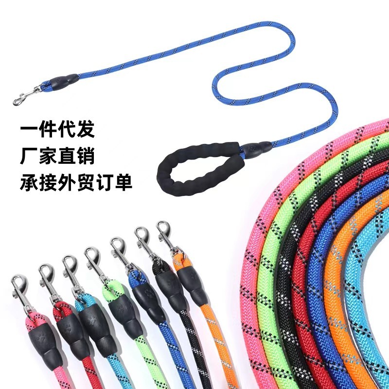 宠物牵引绳批发尼龙圆绳反光防丢狗狗牵引绳狗链子中大型犬防爆冲