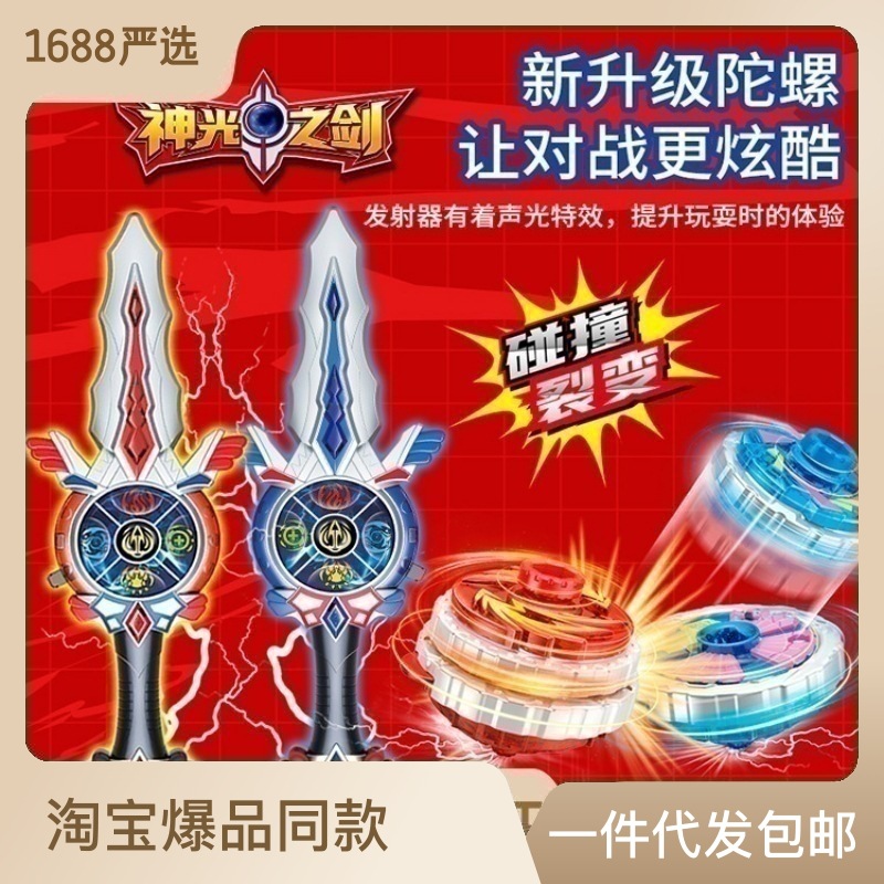 圣剑陀螺玩具儿童发光陀螺枪剑套装合金发声旋风陀螺陀螺发射器