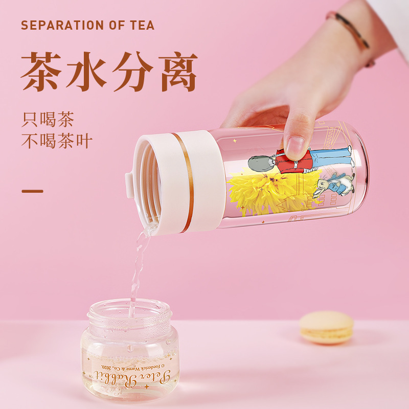 英国比得兔玻璃泡茶杯便携大容量可爱茶杯简约茶水分离双层玻璃杯