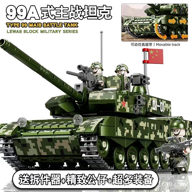 乐玩LW90001二战军事系列99A主战坦克履带装甲车兼容乐高积木玩具