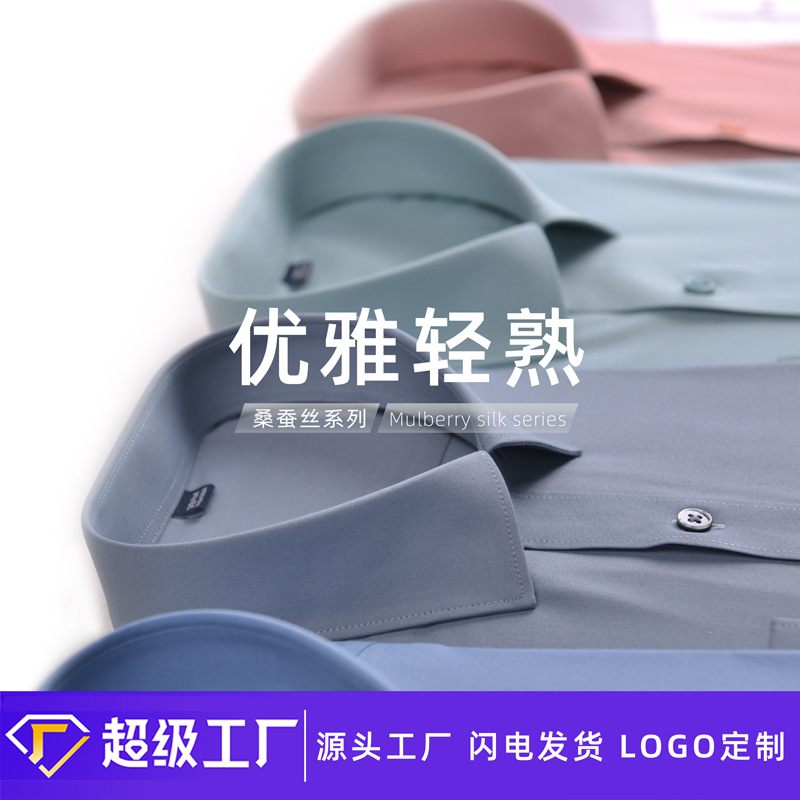 桑蚕丝白衬衫男款免烫长袖高档工装工作服修身轻奢衬衣商务男装