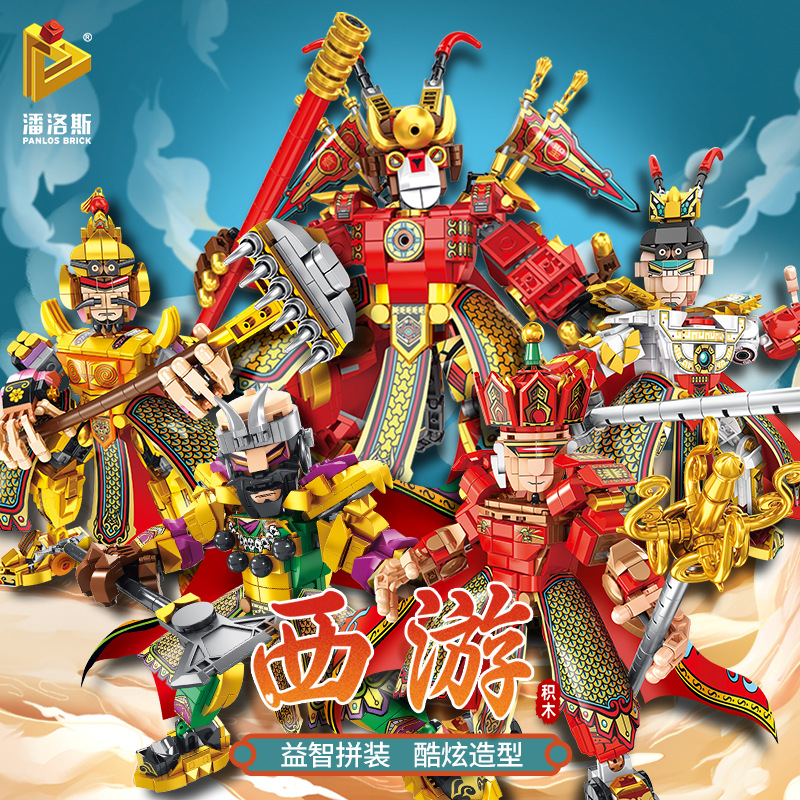 潘洛斯厂家批发西游齐天大圣机甲中国风拼装积木儿童玩具