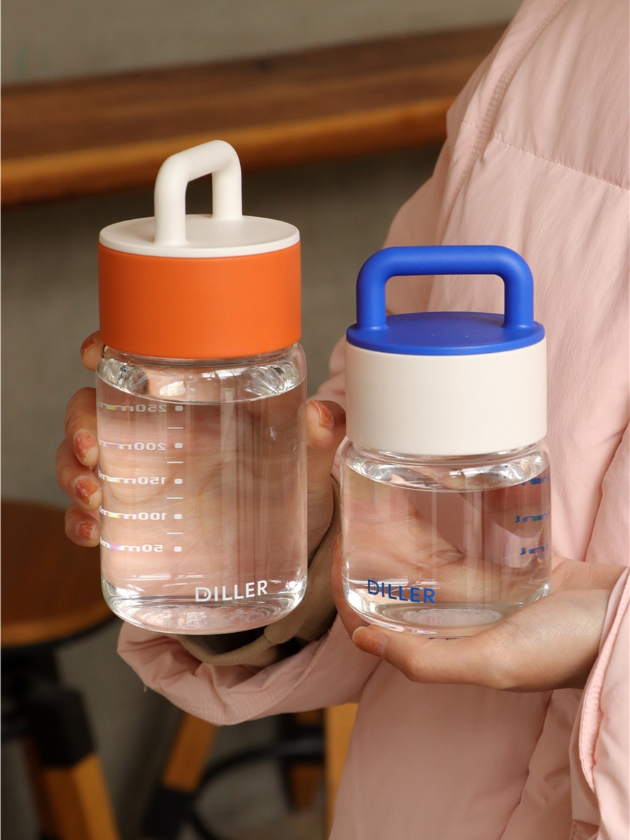 高硼硅刻度玻璃杯带盖女士高颜值水杯耐高温单层男生小巧便携杯子