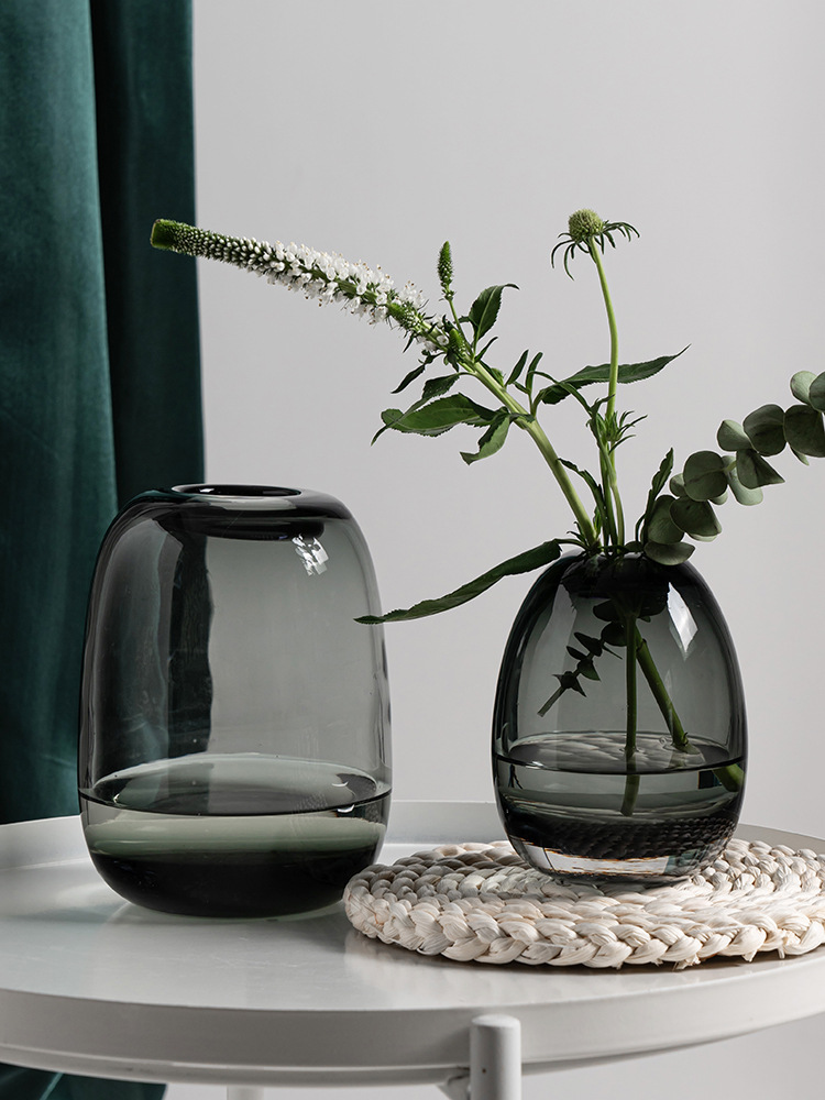 日式简约插花工艺花瓶 圆润厚重玻璃花瓶装饰水培工艺品装饰摆件