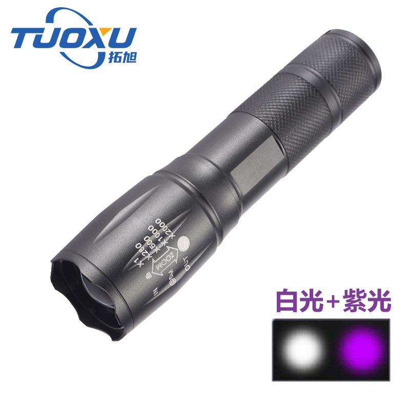白紫双灯强光手电筒紫光灯LED紫外线防伪验钞检测荧光变焦手持灯