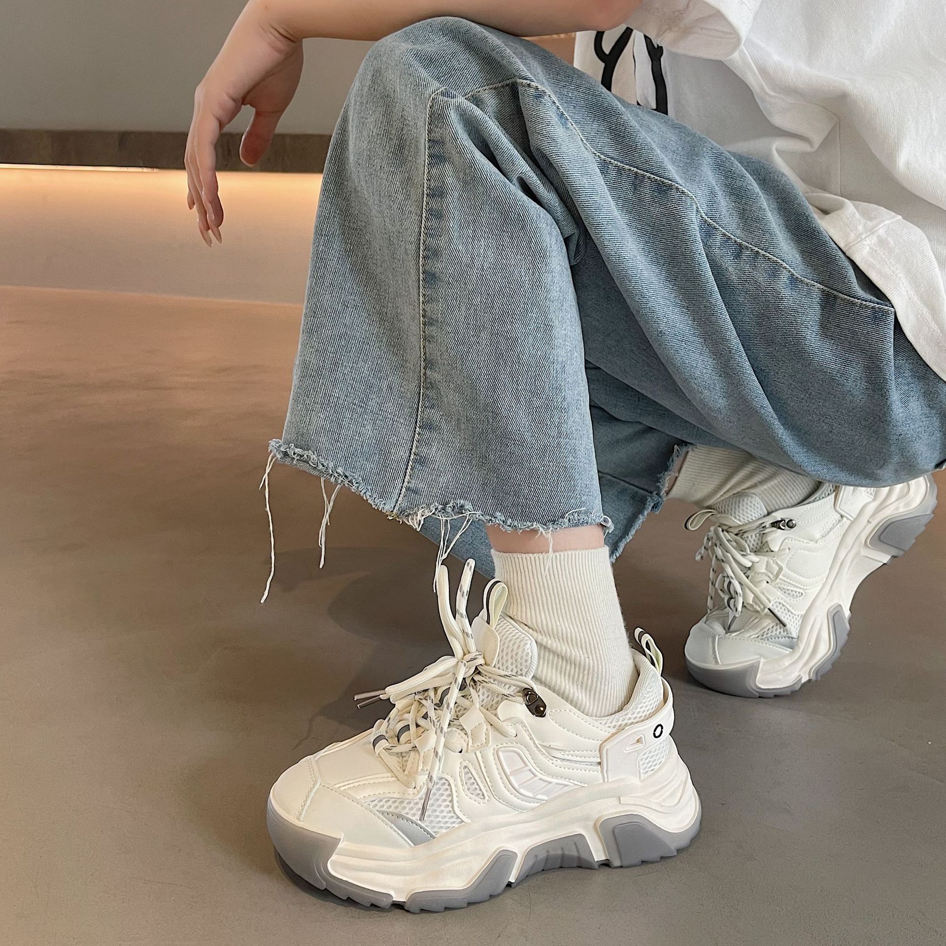 厚底时髦老爹鞋女2022夏季新款学生跑步透气轻便运动鞋拼色休闲鞋