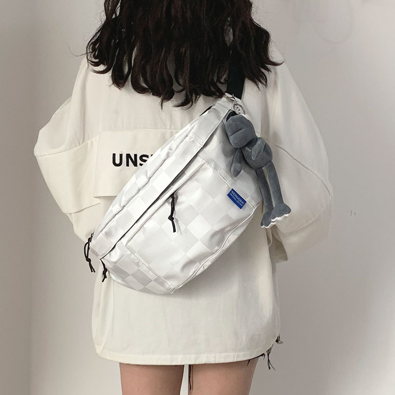 运动背包女夏2023新款学生大容量胸包休闲斜挎包包帆布腰包男工装