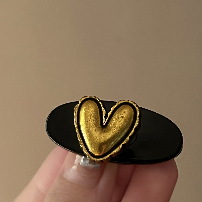 古铜色复古做旧合金爱心侧边刘海夹女气质可爱黑色鸭嘴夹迷你发夹
