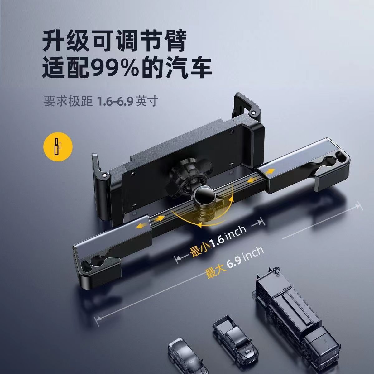 车载后座手机支架汽车后枕手机架卡扣式 360°旋转伸缩平板支架
