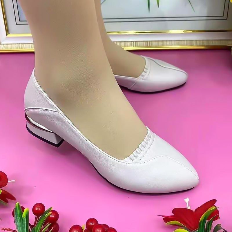 女鞋春秋新款百搭软底厚底鞋女士浅口皮鞋舒适低跟防滑单鞋妈妈鞋