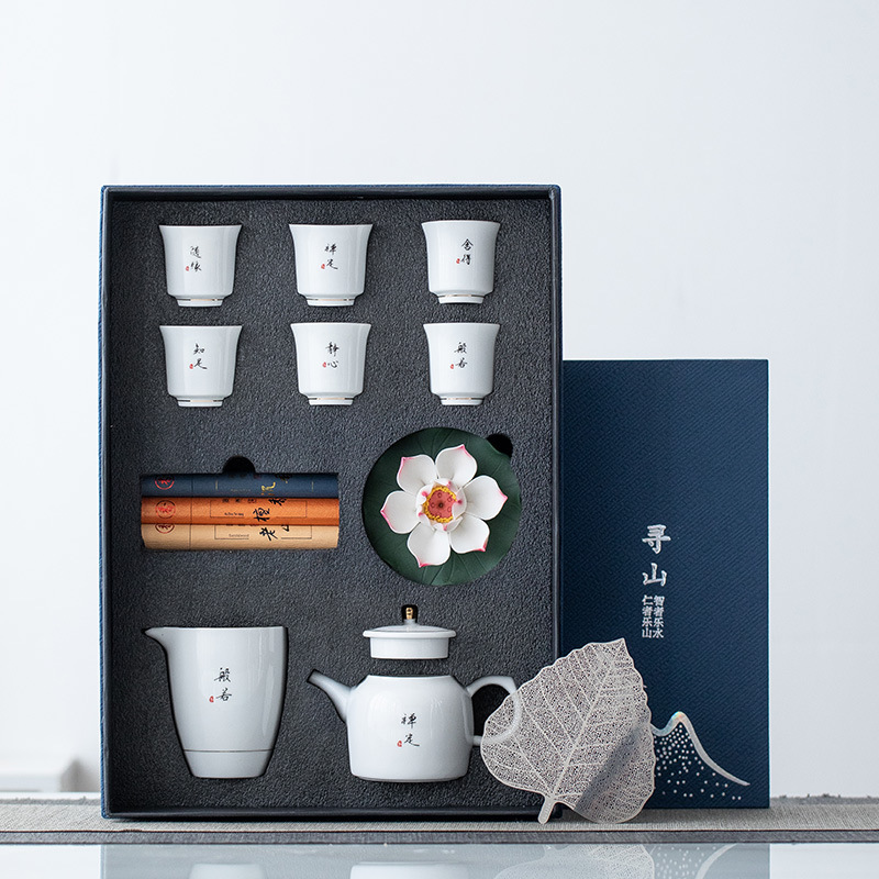 高档羊脂玉商务礼品茶具套装功夫茶具描金公司礼品可加LOGO