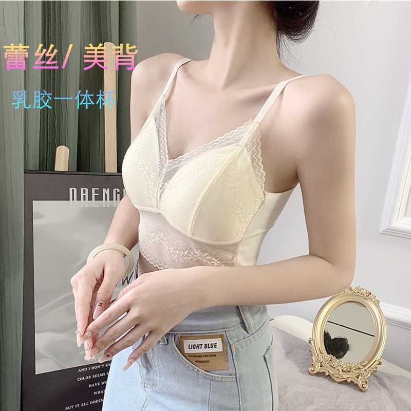 夏季新款蕾丝吊带抹胸内衣外穿内搭一体式乳胶固定杯冰丝美背内衣