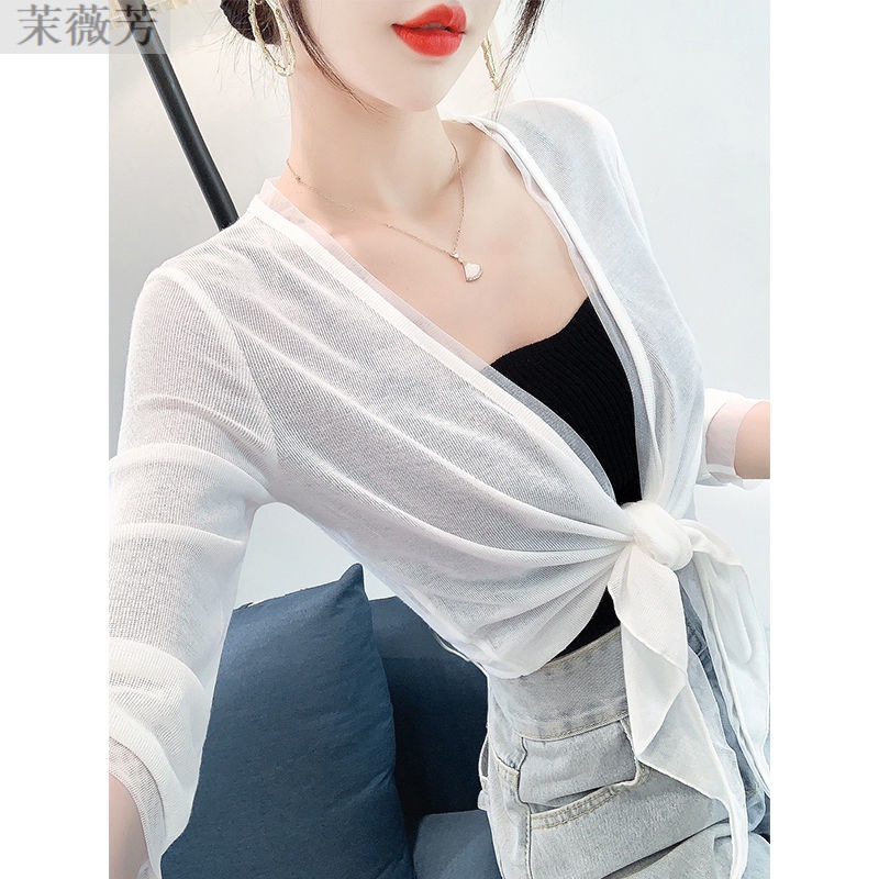 针织开衫女春夏新款2023女装白色薄款外搭披肩空调防晒衫上衣外套