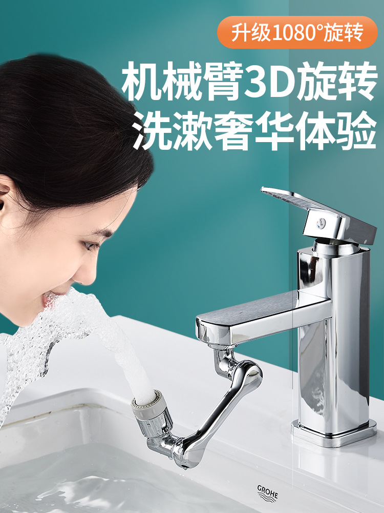 洗手盆机械臂万向头水龙头水嘴可旋转延伸器机械手臂面盆洗漱神器