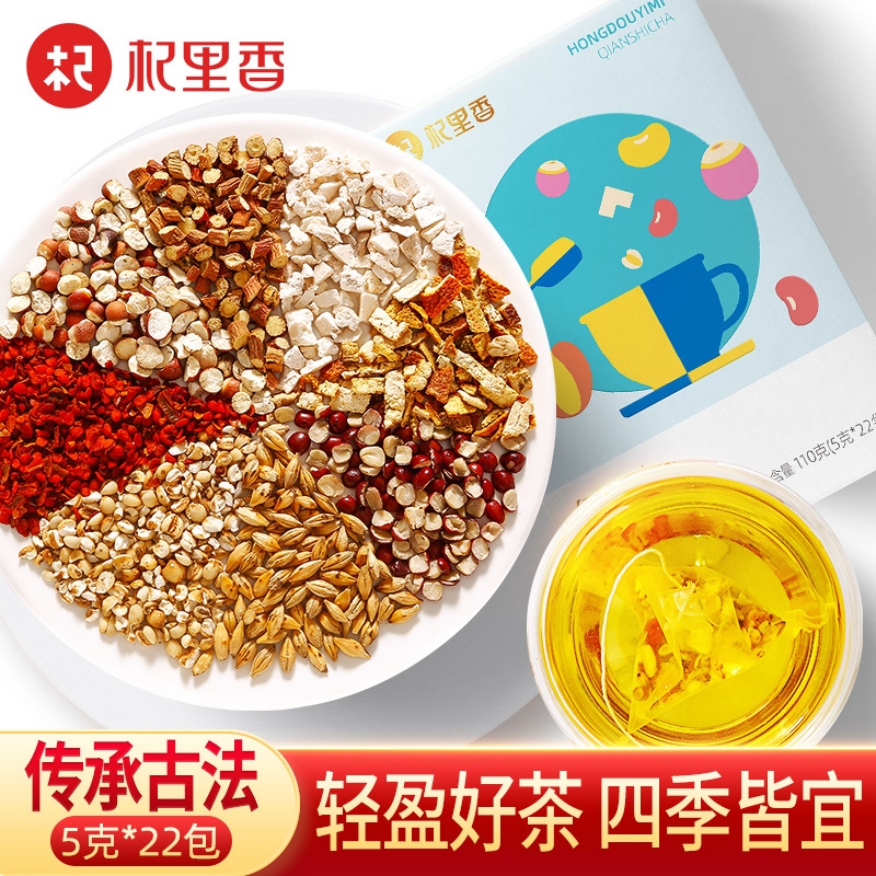 杞里香 红豆薏米茶赤小豆薏仁芡实茯苓茶湿气重祛去排濕茶养生茶5g*22袋/盒 QLX025