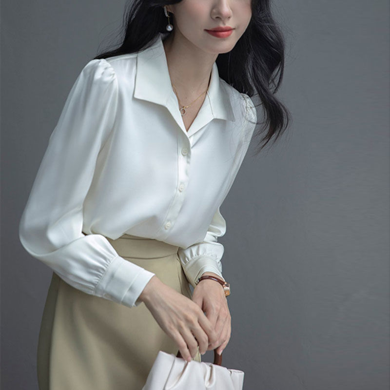 女生衬衫小个子雪纺白色女长袖春秋季通勤法式衬衣显瘦气质上衣