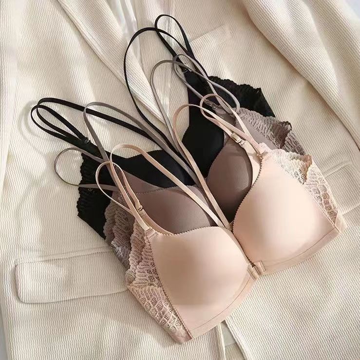 日本美背前扣细带内衣女夏季聚拢提拉小胸显大性感无钢圈无痕文胸