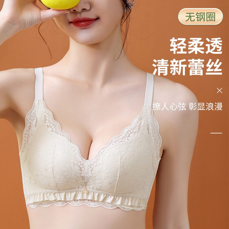 蕾丝无痕女士内衣上托收副乳胶小胸聚拢薄款舒适美背无钢圈文胸女